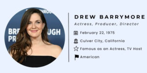 | Career Highlights | E.T. the Extra-Terrestrial (1982), Never Been Kissed (1999), Charlie's Angels (2000), The Drew Barrymore Show (2020-present), Founder, Flower Beauty |