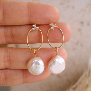 Emerson Pearl Ear Jacket, Pearl Drop Earrings, Bridal Jewelry, Wedding